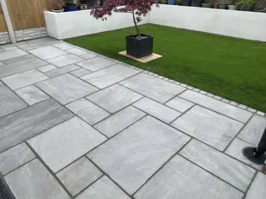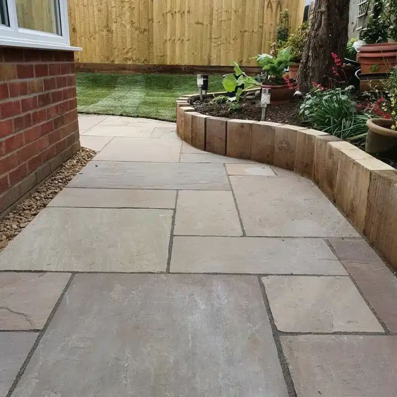 Indian sandstone is a popular choice for its natural beauty and durability. Each slab features unique tones and textures, creating a patio with character and warmth. Sandstone works well in both traditional and modern gardens.